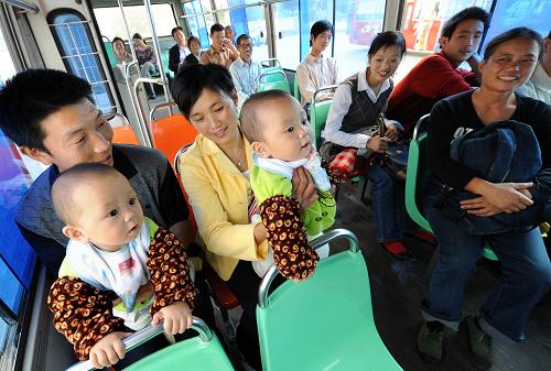 10月21日,农村乘客在南京江宁区土桥集镇汽车站乘坐公交车。改革开放以来,江苏省大力开展农村公路建设,帮助农民加快奔小康的步伐。目前,全省农村公路总里程已超过12万公里,其中,近5年多来建成农村公路近7万公里,累计投入资金377亿多元,在全国各省份中率先实现了以等级公路连通所有乡镇、行政村,并在农村公路“村村通”的基础上实现了客运班车同步通达。四通八达的公路网带动了农村经济和公共事业的发展,大幅提升了农民的生活质量,数千万农村群众从中直接受益。目前,江苏省正加快城乡交通基础设施的“无缝对接”,促进城乡交通一体化发展。新华社记者 孙参 摄