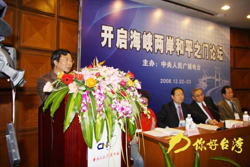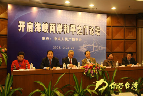 “开启海峡两岸和平之门”论坛是在改革开放走过30年、两岸关系迎来“三通”新时代的大背景下召开的。中央人民广播电台副台长赵铁骑在开幕式上致词时表示,和平发展已成为两岸关系的主旋律,是人心所向、大势所趋;两岸从隔绝走到接触、从敌对走向协商,在互通中彼此的了解正在增多,理解正在加深,因而感情也将更加密切,利益更加融合;随着两岸直接“三通”的基本实现,海峡两岸将迎来大交流、大合作、大发展的新阶段。