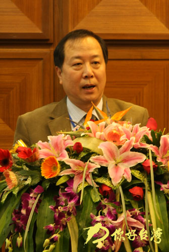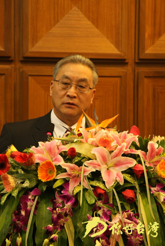 海峡两岸关系协会副会长张铭清在论坛上发言 中华文化发展促进会秘书长辛旗在随后的发言中指出,两岸“三通”真正实现以后,两岸站在了新的历史起点上,建立、开展和强化中华民族的文化交流与融合已经成为两岸的当务之急,也是从根本上保障两岸民族融合、民族统一和民族繁荣的必然需要。