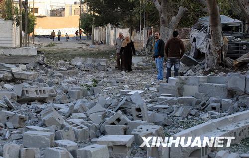 1月12日,人们在加沙城查看巴勒斯坦民族解放运动(法塔赫)立法委员穆罕默德·达赫兰被炸毁的住所。达赫兰位于加沙城的这处住宅在以军导弹袭击中被炸毁。巴方急救部门公布的数字显示,截至12日中午,以军对加沙的17天军事行动已造成超过900名巴勒斯坦人死亡,受伤人数达4100人。新华社发(纳赛尔摄)