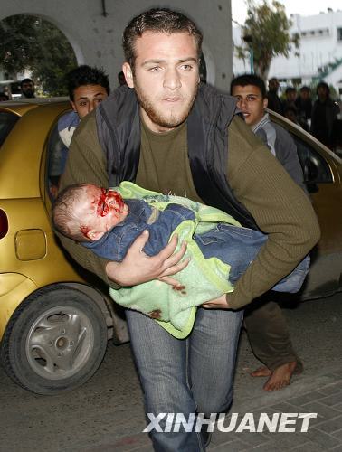 1月11日,一名在以色列袭击中受伤的巴勒斯坦儿童被紧急送往加沙城内的一所医院。据加沙地带急救部门消息,以色列军队11日继续对加沙地带实行空袭和地面进攻,当天造成38名巴勒斯坦人死亡。至此,以军行动造成的死亡人数已超过900。新华社发