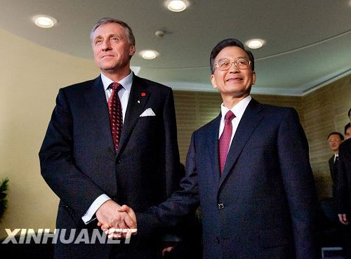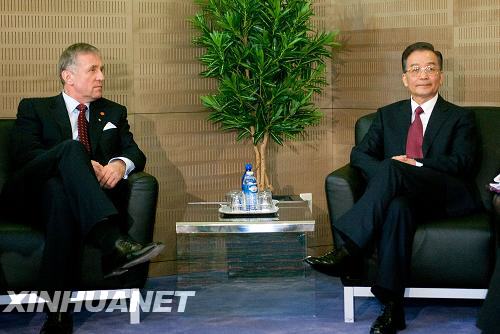 1月30日,国务院总理温家宝在布鲁塞尔会见欧盟轮值国主席、捷克总理托波拉内克。新华社记者徐金泉摄