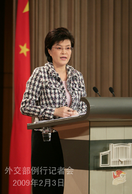 2009年2月3日,外交部发言人姜瑜举行例行记者会,就中美关系、中欧关系、朝鲜半岛局势等回答了记者提问。