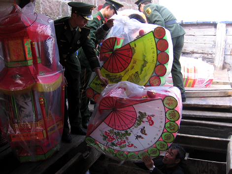 为了做好这批花灯安全迅速运抵马祖,黄岐边防派出所专门开通绿色通道迅速通关,同时组织官兵清理航道,优先为运灯船只安排泊位,并协助搬运花灯。负责运送的马祖台胞刘先生深情地说:“每逢佳节倍思亲,每一盏花灯都代表着祖国同胞炙热的心,两岸花灯一定会越点越红火!”