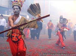 盐水蜂炮白天的阵头也精采。图片来源:台湾“今日新闻”