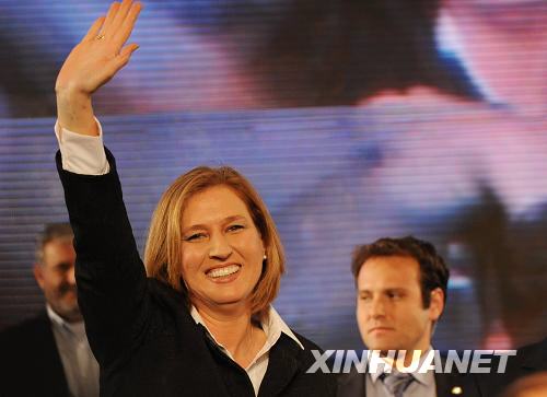 据以色列《新消息报》12日报道,最终计票结果显示,以外交部长利夫尼领导的中间派政党前进党获得议会120个席位中的28席,赢得第18届议会选举。图为以色列外长、前进党主席利夫尼在特拉维夫的庆祝集会上向支持者挥手致意(2月11日摄)。新华社记者殷博古摄