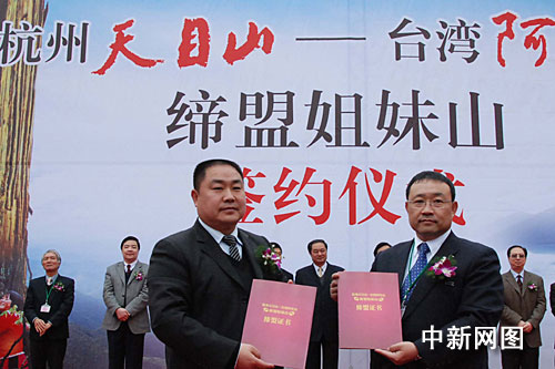 “杭州天目山——台湾阿里山缔盟姐妹山”合约签字仪式。作 者:姜越潮