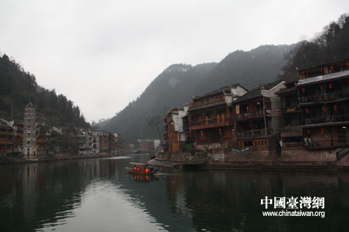 中国台湾网2月27日湖南凤凰消息 台南市地方民意代表来湘参访团今天游览了风景优美的凤凰古城,近40位来自台南的民意代表、里长泛舟沱江,感受凤凰古朴灵秀的自然风光,并访问了城内沈从文故居、熊希龄故居及历史博物馆等人文景观,体验浓郁的湘西风情。