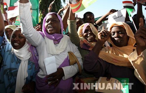 3月4日,在位于苏丹首都喀土穆市区尼罗河畔的苏丹内阁事务部门前,数千民众举行集会,支持总统巴希尔,反对国际刑事法院的做法。设在荷兰海牙的国际刑事法院以涉嫌在苏丹达尔富尔地区犯有战争罪和反人类罪为由,当天宣布正式对苏丹总统巴希尔发出逮捕令。 新华社记者翟希摄
