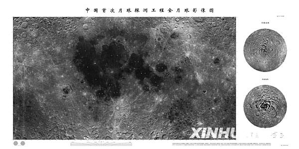 2008年11月12日,依据嫦娥一号卫星拍摄数据制作的中国第一幅全月球影像图正式公布。 新华社发