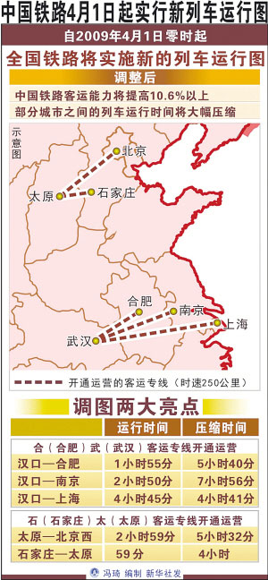 根据铁道部的统一部署,自4月1日零时起,南昌铁路局将实行新的列车运行图,新增开旅客列车17对,日均运输能力达25万,比原先增长4.4%。除增开南昌至昆明、哈尔滨旅客列车外,南昌铁路局管内还将首开福州至西安、厦门至太原的旅客列车,把东南沿海与西北、华北内陆紧紧相连。赣闽两省群众的出行将有更多选择,去东北、西南、西北将不再需要中转,一车直通。
