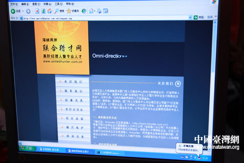 台湾泛亚人力资源管理顾问公司总监曾翊铭向记者介绍了网站的相关情况,他说“两岸联合猎才网”的目标是为两岸企业和高阶人才搭建常态化的对接平台,使人才和企业能够各取所需,以加快两岸人才合作步伐,未来网站将力图成为大中华区的高级人才网站。他并且乐观地表示,未来两岸关系更为明朗、更为开放的时候,大陆人才也可以通过这个平台前往台湾寻求机会。