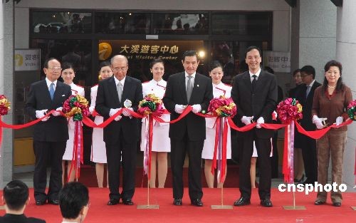 马英九在剪彩仪式上发表演讲。来源:中新社