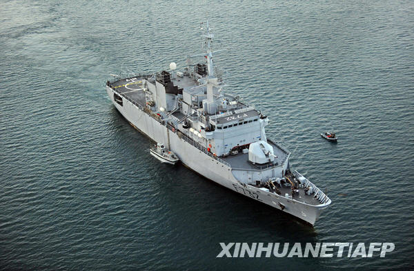 这是2008年11月25日在吉布提港附近海域拍摄的名为“Le Nivose”的法国军舰。法国国防部2009年4月15日宣布,这艘法国军舰当天在肯尼亚附近海域巡逻时抓获了11名海盗。新华社/法新