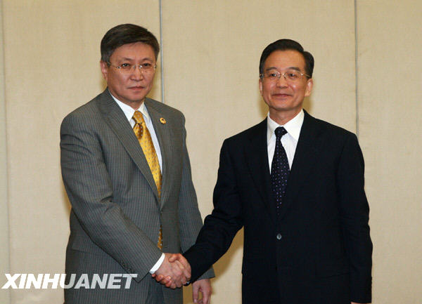 4月17日,国务院总理温家宝在海南三亚会见前来出席博鳌亚洲论坛2009年年会的蒙古国总理巴亚尔。新华社记者 庞兴雷 摄
