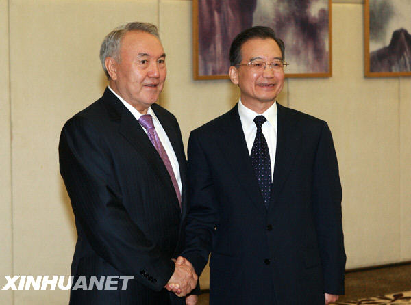 温家宝在会见纳扎尔巴耶夫时表示,中哈战略伙伴关系快速发展,务实合作成果丰硕。面对国际金融危机的严重冲击,两国充分发挥各自优势,加强合作,给双方带来了实实在在的利益。双方要重点做好四方面工作:一是采取积极措施,保持双边贸易增长势头;二是加紧落实已达成的协议,重点推进能源、资源领域的合作;三是加强金融和投资合作,确保大项目顺利实施;四是推动基础设施等非资源领域合作,使两国贸易关系更加富有活力。