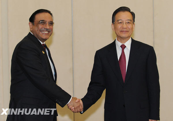 温家宝在会见扎尔达里时表示,巩固和发展中巴关系是中国外交的优先方向。作为全天候朋友,中国愿为巴基斯坦的稳定和发展提供力所能及的帮助,也欢迎国际社会发挥积极的建设性作用。中方愿与巴方共同努力,维护地区稳定与安宁。在当前形势下,双方要加强落实已签署的能源和交通设施大项目,不断挖掘潜力,探索扩大合作的新途径、新方法,使两国人民得到更多实惠。