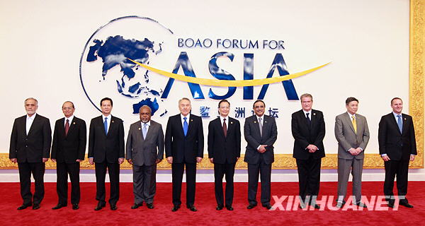 4月18日,博鳌亚洲论坛2009年年会在海南博鳌举行开幕式。这是国务院总理温家宝同出席博鳌亚洲论坛的各国领导人在开幕式前合影。新华社记者 庞兴雷 摄