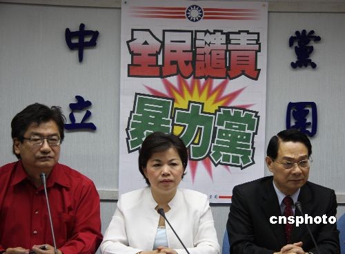 4月22日下午,国民党党团召开记者会,不但痛批民进党是暴力政党,还点名民进党主席蔡英文必须出面道歉。国民党团书记长杨琼璎指出,“立委”洪秀柱才被绿委管碧玲打一巴掌,现在又发生李庆华被邱议莹打,全民应谴责民进党暴力。“‘立委’有言论免责权,但绝对没有暴力免责权,蔡英文必须为自己的委员行为向全民道歉。”