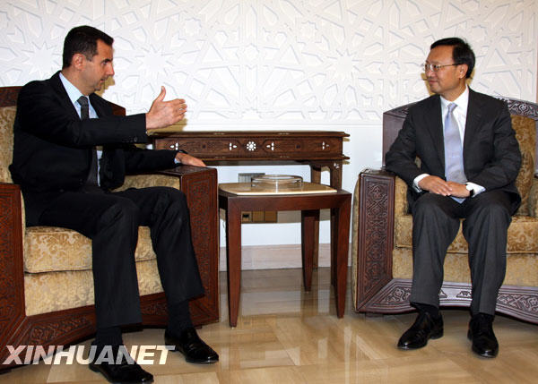 4月26日,叙利亚总统巴沙尔(左)在大马士革会见中国外长杨洁篪。新华社记者拱振喜摄