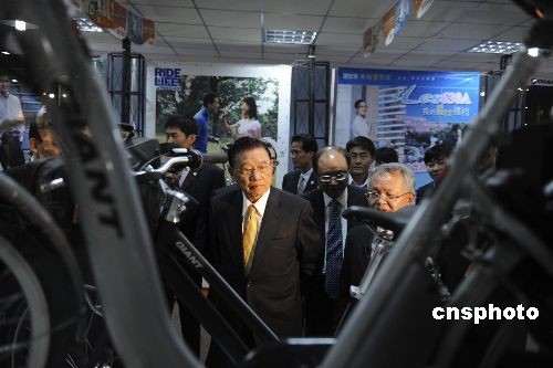 四月二十八日,海基会董事长江丙坤一行参观江苏昆山台资企业——捷安特自行车(中国)有限公司。 中新社发 廖攀 摄