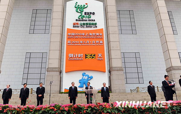 5月1日,2010年上海世博会倒计时一周年暨计时牌启动仪式在北京天安门广场举行。中共中央政治局常委、全国人大常委会委员长吴邦国出席仪式并致辞。新华社记者 李涛 摄