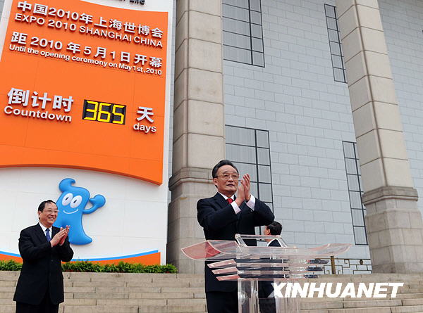 5月1日,2010年上海世博会倒计时一周年暨计时牌启动仪式在北京天安门广场举行。中共中央政治局常委、全国人大常委会委员长吴邦国出席仪式。新华社记者 李涛 摄