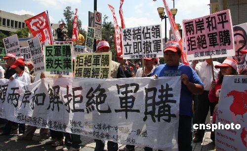 夏潮联合会的演讲人说:“台湾受美国引发的金融海啸的冲击,失业率攀升,当局采取扩大内需措施,却又受到庞大债务的限制和影响,欲振乏力。就在此时,美国又向台湾推销天价的军火武器。这笔沉重的军购负担,将逼使无路可走的劳工,陷入绝境。为了捍卫越来越少的社会福利预算,为了珍惜两岸和解所带来的和平环境和红利,台湾劳工要在五一劳动节大声地向美国推销军火的人说不,也呼吁当局不应盲目附和美国无理的军火勒索。”