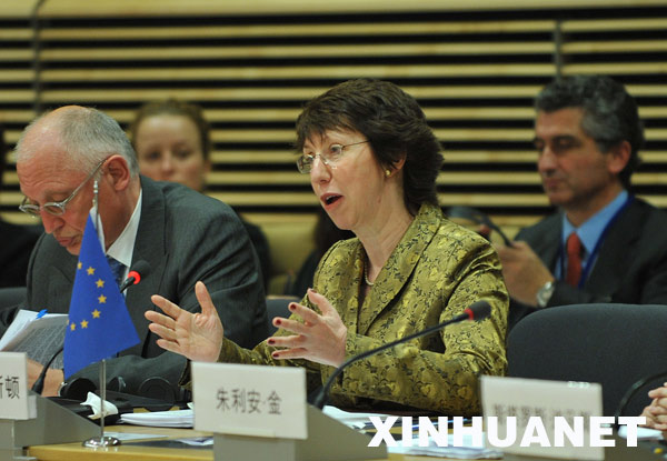 5月7日,在位于比利时首都布鲁塞尔的欧盟总部,欧委会贸易委员阿什顿在当天开幕的第二次中欧经贸高层对话会上发言。新华社记者武巍摄