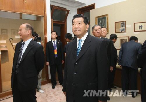 5月31日,宋庆龄同志故居暨生平展重新开放仪式在北京举行。中共中央政治局常委、全国政协主席贾庆林出席。贾庆林还参观了宋庆龄生平展、居所原状陈列,以及宋庆龄珍藏的孙中山历史文物展,并向宋庆龄雕像敬献鲜花。 这是贾庆林在宋庆龄故居参观。 新华社记者 刘卫兵 摄