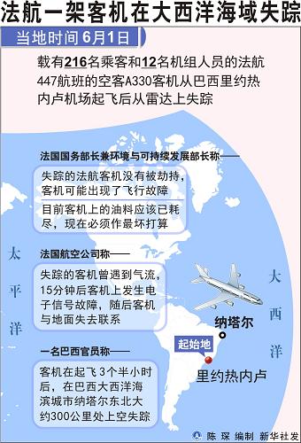 图表:法航一架客机在大西洋海域失踪 新华社发
