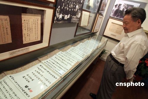 上海孙中山故居纪念馆与中国国民党党史馆首次联合举办的《永恒的丰碑——纪念孙中山先生文物文献展》昨日正式启幕,刚跟随国民党主席吴伯雄到南京晋谒中山陵的中国国民党副秘书长张荣恭赶来出席。