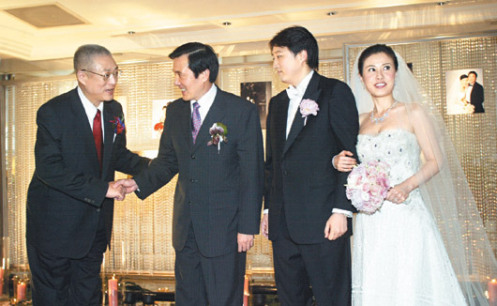 结婚酒会由吴伯雄证婚,马英九贵宾致词,期勉新郎至少要生三个以上。他也询问新人婚后是否定居台湾,当得到肯定答案后,随后竟爆出“那就归我管了”,让现场笑翻天。