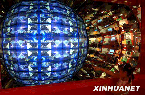 7月5日,一位小朋友在观看展览。当日,“走进世博会——中国2010年上海世博会暨世博会历史回顾展览”在首都博物馆。展览通过模型、图片、实物等方式介绍了上海世博会筹备工作的最新进展,以及世博会发展历史。 新华社记者 公磊摄