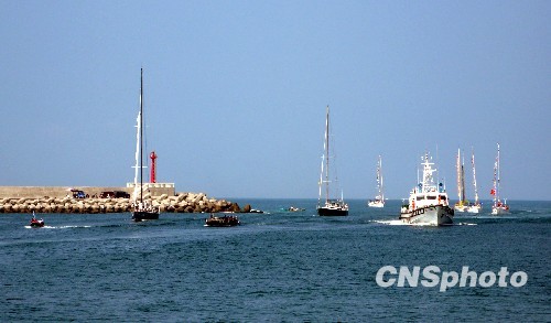 七月三十一日日上午,参加首届“海峡杯”帆船赛的十五艘重型帆船安全驶入终点——台南市安平港。从厦门出发,两岸一百三十多名运动员历经约二十小时拉力赛航行,完成首个穿越台湾海峡的体育赛事。