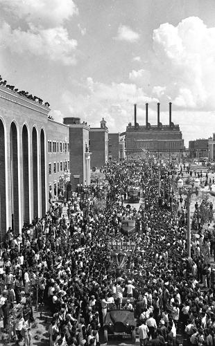 图为武汉长江大桥落成通车典礼(资料照片)。新中国成立60年来,国家实施的各类重点工程遍布祖国大江南北、分布于国民经济各个领域,在社会主义现代化建设中发挥着不可或缺的辐射和带动作用,书写着中华民族走向伟大复兴的壮丽篇章。新华社发