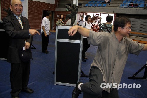中新社台北八月六日电(记者 董会峰 刘舒凌)连北京奥运会八金得主、美国“飞鱼”菲尔普斯都赞叹不已的“太极群像雕塑展”,继二00八年在北京大学首展后,六日移师台湾师范大学开展。