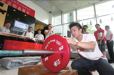 民间奥运藏品拍卖争夺激烈张湘祥夺冠杠铃拍得7.2万元