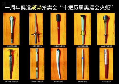 火炬是昨日的拍卖热门,第4个标的“1968-2008年10把奥运火炬”以50万元起价,经过长达半小时的争夺,最终被001号竞买人以180万元竞得,这是昨日拍卖会成交价格最高的一个标的。
