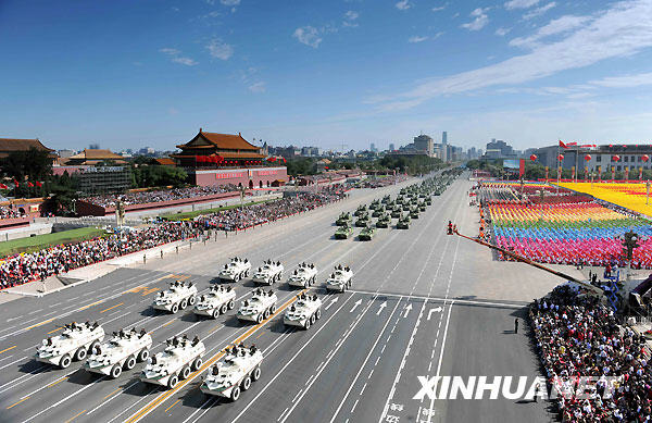 10月1日,首都各界庆祝中华人民共和国成立60周年大会在北京举行。这是装备方队经过天安门。新华社记者 杨磊摄