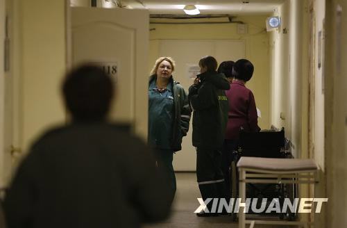 12月5日,在俄罗斯彼尔姆市的一家医院内,医护人员为救治夜总会火灾伤员而忙碌。当日凌晨,彼尔姆市的“瘸腿马”夜总会发生火灾,目前已造成至少109人死亡。截至目前,在医院接受救治的伤员有130多人,其中88人情况危急,重伤者已搭乘俄紧急情况部的专机被运往莫斯科进行救治。新华社记者鲁金博摄