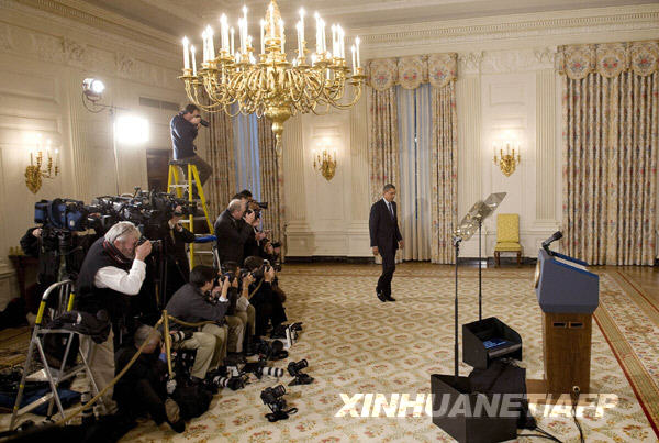 1月7日,在美国首都华盛顿白宫,美国总统奥巴马准备就圣诞节未遂炸机事件发表讲话。当日,奥巴马宣布为圣诞节未遂炸机事件承担责任。新华社/法新