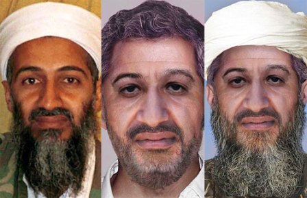 拉登在2007年9月份露面后就再也没有公开现身,他的容貌很可能随着时间的流逝发生了改变。为便于追捕拉登,美国联邦调查局的法医们根据拉登的脸型数据和以往的资料,利用数码技术合成了他目前的最新照片。在已经公布的两张拉登照片中,一张是他身着传统服饰,另外一张是他身着西方服饰并且留着短胡须。