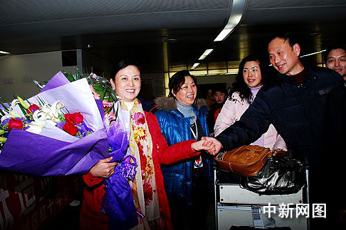 中新网苏州1月16日电(李克祥)15日下午,苏州第三位成功对台捐髓者韩秀芳,她的丈夫顾华一,还有全程陪同的“大陆对台捐髓第一人”杭彬,一行三人从北京飞回上海虹桥机场。苏州市红十字会、韩秀芳工作单位苏州监狱的工作人员、苏州市相城区的十二位小学生等一起前往迎接。