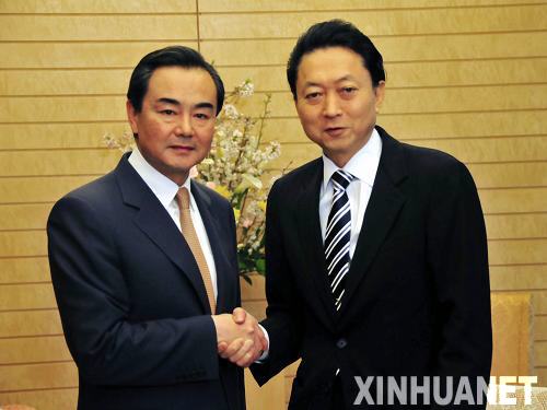 3月19日,在日本首都东京,日本首相鸠山由纪夫(右)会见了正在日本访问的中国国务院台湾事务办公室主任王毅,双方围绕台湾问题交换了意见。 新华社记者刘华摄