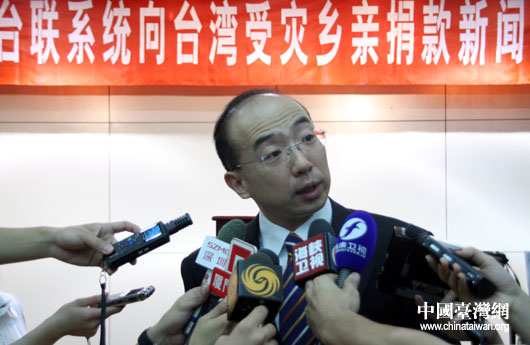 全国台联8月25日上午在北京召开新闻发布会,全国政协委员、全国台联副会长纪斌介绍全国台联系统和大陆台胞捐款的有关情况。(中国台湾网 钟宝华 摄)