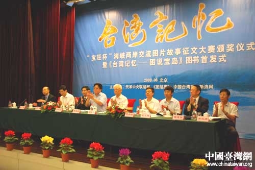 中国台湾网8月26日北京消息 由民革中央联络部、《团结报》、中国台湾网、新浪网联合主办,北京宝旺集团有限公司赞助的“台湾记忆——宝旺杯海峡两岸交流图片故事”征文活动颁奖仪式暨《台湾记忆——图说宝岛》图书首发式今天在北京隆重举行。全国人大常委会副委员长、民革中央主席周铁农出席颁奖仪式并发表讲话。