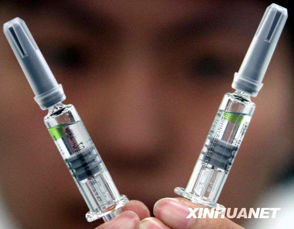 9月3日,北京科兴的工作人员在展示甲型H1N1流感病毒裂解疫苗。当日,国家食品药品监管局批准北京科兴生物制品有限公司生产的甲型H1N1流感病毒裂解疫苗注册申请,科兴公司正式获得疫苗生产批准,并开始批量生产。新华社记者 邢广利摄
