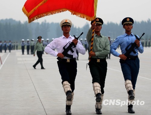 在10月1日的国庆阅兵中,陆、海、空三军航空兵部队将组成庞大的受阅机群,沿长安街方向飞过天安门广场。目前,各受阅梯队正在紧张的训练中。 10余支航空兵师、团从天南海北飞赴冀北平原,驻训于京、津、冀间的数个军用机场。