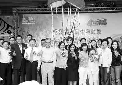 10月17日在“台湾温泉美食嘉年华暨台东温泉祭”启动仪式上,业者互相鼓劲。